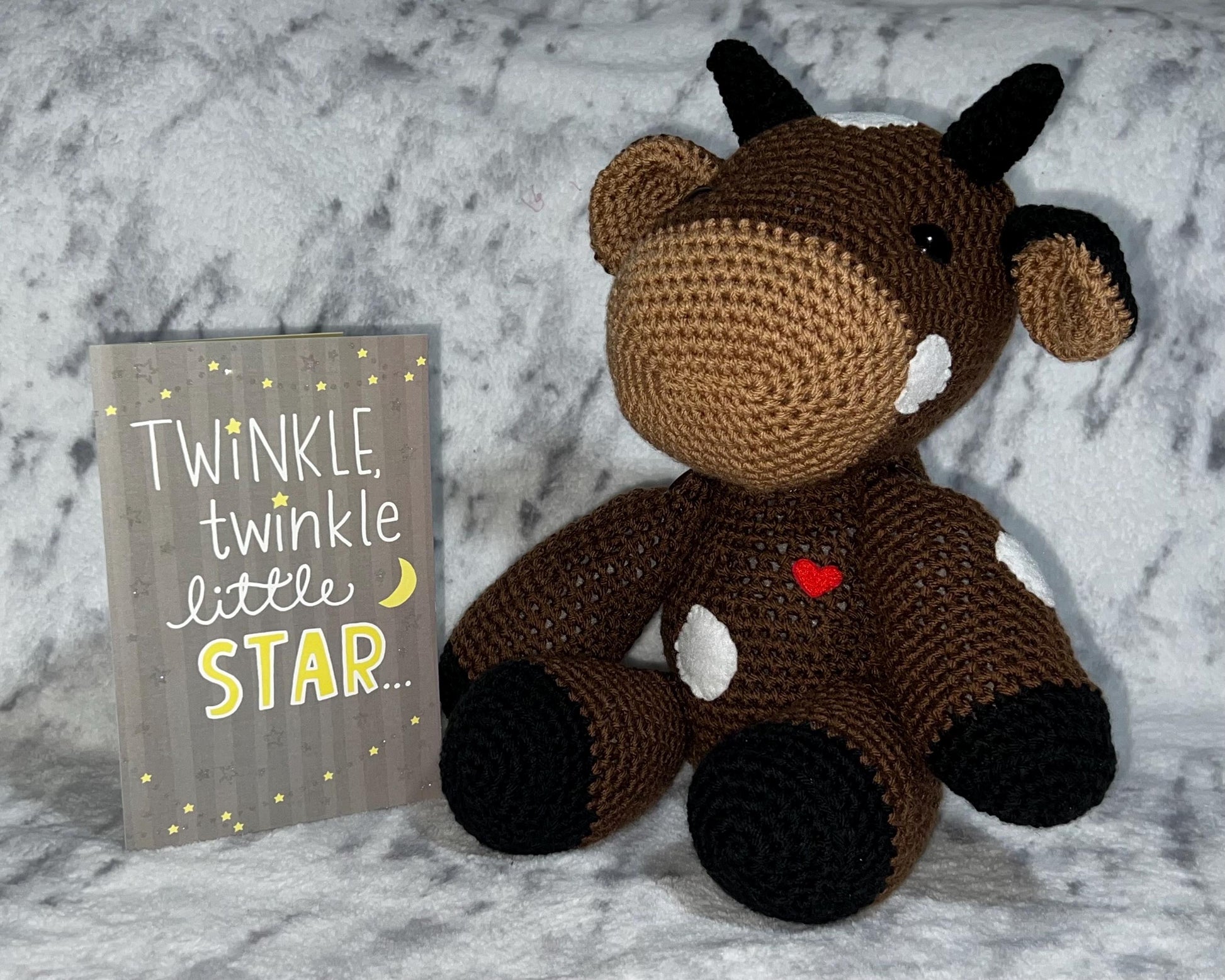Meet our adorable Chocolate Cow, a sweet and cuddly companion perfect for gifting or decorating a cozy space. This handmade cow is carefully crocheted with love, making it a one-of-a-kind keepsake to treasure.
